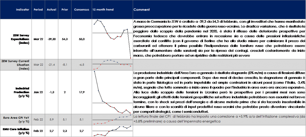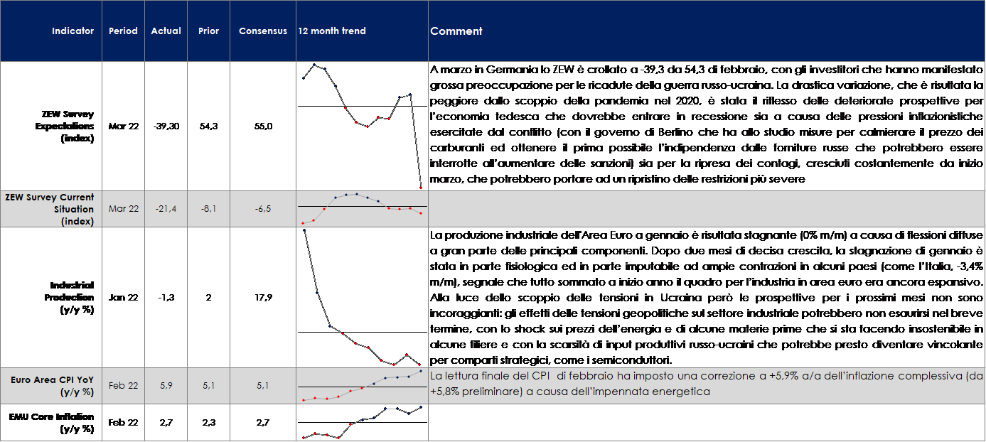EUROPA: l’indice ZEW ha registrato un calo record a marzo, spinto dai timori inerenti all’invasione russa dell’Ucraina