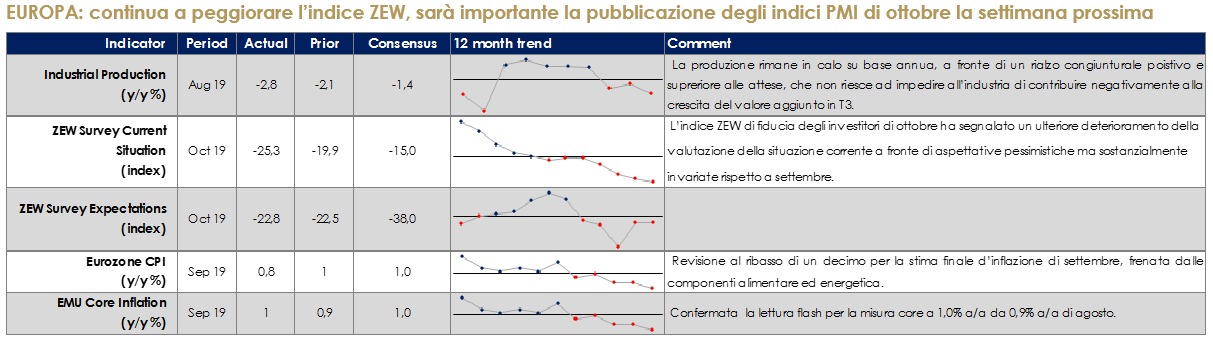 EUROPA: continua a peggiorare l’indice ZEW, sarà importante la pubblicazione degli indici PMI di ottobre la settimana prossima