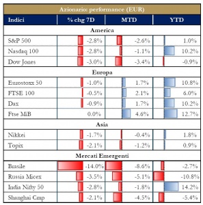 EUROPA: Finanziari: Unicredit ha collocato una nuova obbligazione Additional Tier1, con call a sei anni, da €1.25mld a fronte di ordini per oltre €2.8mld, sfruttando il miglioramento della percezione di mercato sulla banca dopo l’aumento di capitale da €13mld. Sempre parlando di Unicredit, Central Bank of Libya ha diluito la sua quota allo 0.82%, mentre Leonardo Del Vecchio, tramite Delfin, e Allianz sono sostanzialmente stabili rispettivamente all’1.93% e all’1.01%. I fondi Dodge e Cox erano presenti con il 3.44% in assemblea. Il gruppo Fideuram-Intesa Sanpaolo Private Banking ha chiuso il Q1 con un utile netto consolidato di €223mln (+5%) e masse amministrate per €202.9mld (+2%). Banco BPM ha in rampa di lancio una cartolarizzazione di sofferenze bancarie con la garanzia pubblica e si avvia al rush finale dell’operazione Project Rainbow. Inoltre, il nuovo piano di MPS è quasi concluso e la settimana prossima dovrebbe essere quella buona per il via libera della struttura tecnica della Dg Comp. Arriverà poi, entro oggi, l’offerta non vincolante di Atlante per la maggioranza delle tranche junior e mezzanine della cartolarizzazione sui €29mld di npl; Il fondo potrebbe accompagnarsi a Fonspa e Fortress. L’emissione sarà del tipo senior ammontare atteso fino a €300mln. Le obbligazioni saranno riservate a investitori qualificati. Infine, GIC, fondo sovrano di Singapore, che aveva investito in UBS durante la crisi finanziaria 2008, ha comunicato di aver tagliato la propria partecipazione dal 5.1% al 2.7% e il governo britannico sta per vendere la propria partecipazione (43.4%) in Lloyds così che la banca sia il primo gruppo dalla crisi a liberarsi dalla proprietà dello stato in un passo simbolico di recupero del settore. Energy: Iren ha completato a un prezzo di €1.98 per azione il collocamento di circa 26mln di azioni ordinarie (2.0% del capitale) realizzato attraverso un ABB da parte del Comune di Reggio Emilia e di STT Holding; inoltre il CdA ha deliberato la disponibilità a finanziarie la controllata indiretta Trattamento Rifiuti Metropolitani nel rimborso anticipato volontario del project financing da 413mln con debito residuo a fine giugno 2017 di 303.5mln. A2A ha comunicato di essere interessata agli asset di Gas Natural in Italia, se venissero messi in vendita; ha poi confermato i vertici per altri tre anni, fino al bilancio 2019, con l’AD Luca Valerio Camerano e il presidente Giovanni Valotti. Infine, CDP perfezionerà la cessione dell’1.12% di Snam e dello 0.97% di Italgas a CDP Reti per un corrispettivo totale di €187.6mln. Telco: Fininvest ha acquistato l’1.27% del capitale di Mediaset salendo al 41.09% dei diritti di voto e al 39.53% del capitale sociale totale. Passando invece a Telecom Italia, Vivendi ha offerto la vendita di una controllata del gruppo italiano, Persidera, ai regolatori UE per ottenere il via libera al controllo dell’ex incumbent. Inoltre, secondo Il Sole 24 Ore, Uefa avrebbe contattato Mediaset, Sky, Discovery e Rai sulla gara dei diritti tv in Italia per Champions League ed Europa League 2018-2021, mentre fra le telco sarebbe stata contattata Telecom. Cairo Communication chiude il Q1 con una perdita di 3.1mln considerando l’intero periodo e un utile di 0.3mln da 1.7mln a perimetro costante. Infine, la prossima assemblea degli azionisti de Il Sole 24 Ore voterà l’abolizione del tetto del 2% sul possesso azionario per rendere più appetibile l’aumento di capitale da almeno €50mln di cui il gruppo editoriale ha bisogno. Tecnologici: Hydra, azionista di maggioranza di Datalogic, ha avviato la cessione di massime 2,922,323 azioni, 5% del capitale della società, attraverso una procedura di ABB riservata a investitori istituzionali. I risultati trimestrali di Ubisoft si sono rivelati nettamente inferiori alle attese, col conseguente calo delle azioni che ha riaccesso i rumors su una possibile acquisizione da parte di Vivendi, che potrebbe essere facilitata nel convincere le minorities. Industriali: Buzzi ha chiuso il Q1 con un fatturato consolidato in crescita dell’8.9% a 588.5mln; per l’intero anno conferma la guidance di un Mol ricorrente consolidato in crescita tra il 5% e il 10%. CNH ha collocato un’obbligazione da €500mln con scadenza 5 anni, prezzo di emissione pari al 99.335% del valore nominale e cedola fissa del 1.375%. Occhiali: Luxottica ha deciso di avviare la procedura di delisting dal NYSE delle American Depositary Shares rappresentate dagli American Depositary Receipts e di richiedere la cessazione volontaria della registrazione presso la SEC e dei connessi obblighi informativi. Food: Lidl è in procinto di aprire il primo set di 20 negozi negli Stati Uniti; i primi negozi saranno aperti in Virginia, Nord e Sud Carolina e l’idea è di arrivare a 80 negozi entro la fine del primo anno. Tale ingresso aumenterà la già intensa guerra di prezzo in atto tra le grandi catene alimentari americane. Danone ha dichiarato di avere investito nelle sinergie derivanti dall’acquisizione di WhiteWave e su un piano di taglio dei costi da €1mld così da aumentare il margine operativo sopra il 16% entro il 2020. Settore auto: Il ministro dello sviluppo economico Calenda chiede chiarezza alla Commissione UE, che ha avviato una procedura di infrazione a carico dell’Italia per i test sulle emissioni di FCA, decisione che sta pesando sull’andamento del titolo del gruppo automobilistico. M&A: Atlantia ha promosso un’offerta su tutte le azioni Abertis, un’operazione che punta a essere amichevole e valorizza il gruppo spagnolo oltre €16.3mld con l’obiettivo di creare il principale operatore di autostrade al mondo. Shanghai Pharmaceutical Holding ha informato di essere interessata a un deal con Stada Arzneimittel; tale mossa metterà SPH in competizione con Bain e Civen che hanno fatto un’offerta congiunta di $6mld..