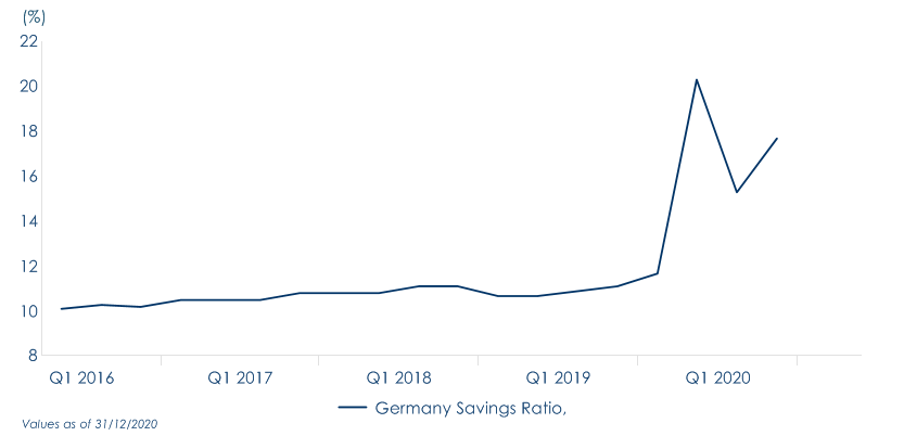 | Fig.5: Contestualmente, le condizioni finanziarie accomodanti hanno favorito un accumulo di risparmio da parete delle famiglie, il cui impiego indica un rimbalzo dei consumi in estate.