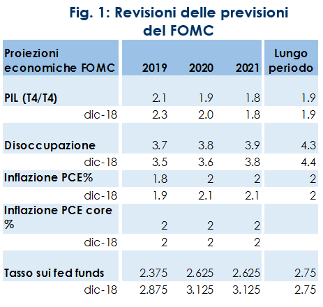 - La sintesi delle proiezioni economiche del FOMC non indicano più un rialzo dei tassi per il 2019