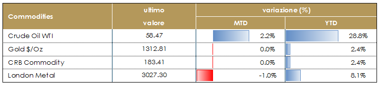 Da inizio anno, da segnalare la performance in valuta locale vicina al 16% in Italia e per il Nasdaq, e di quasi il 30% in Cina. A livello settoriale (sia in USA che Europa) tra gli indici migliori i consumi e la tecnologia, mentre i finanziari tra i peggiori. Gli utili attesi dagli analisti, a livello geografico, sono ovunque su un sentiero di crescita a/a più basso rispetto ad un anno fa, anche se le valutazioni (ad esempio P/E) sono di riflesso leggermente più attraenti. Il posizionamento degli investitori in generale non è più così “affollato” come poteva essere verso l’autunno del 2018 (sia in termini assoluti che relativi verso il comparto obbligazionario) e gli indicatori di sentiment (put/call ratio, bull/bear ratio) sono lontani dall’indicare situazioni di iper-comprato. Infine, va a aggiunto che, pur in presenza di una performance molto positiva da inizio anno, con la fine di marzo ci si avvicina ad un periodo dell’anno che, ancora per un paio di mesi, è tradizionalmente favorevole agli investimenti rischiosi. |