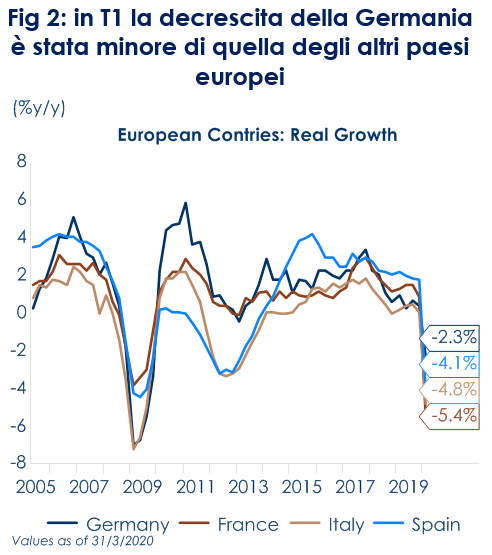 - Rispetto agli altri paesi dell’Area, la Germania sta registrando una performance migliore e probabilmente uscirà dalla crisi più velocemente