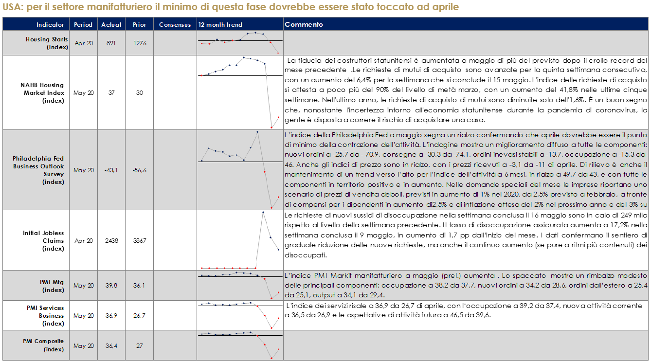 USA: per il settore manifatturiero il minimo di questa fase dovrebbe essere stato toccato ad aprile