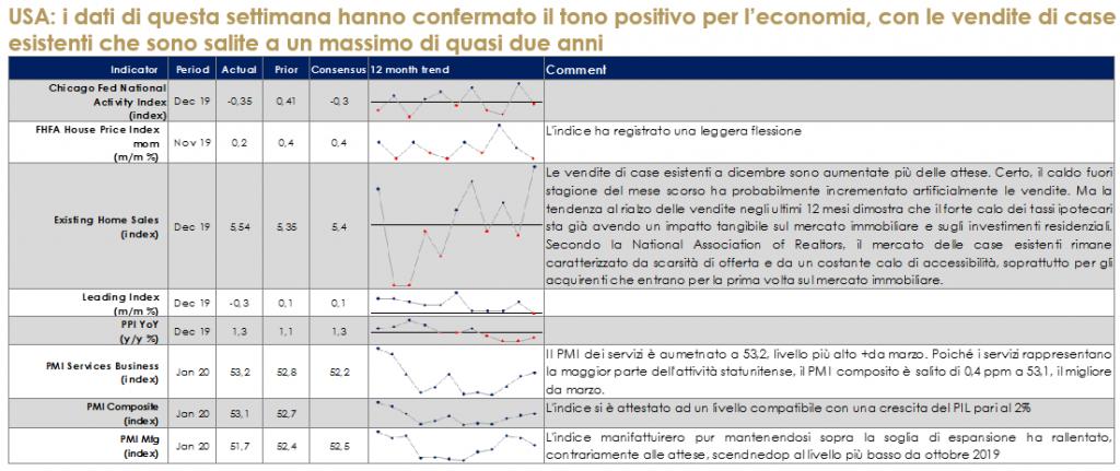USA: i dati di questa settimana hanno confermato il tono positivo per l’economia, con le vendite di case esistenti che sono salite a un massimo di quasi due anni