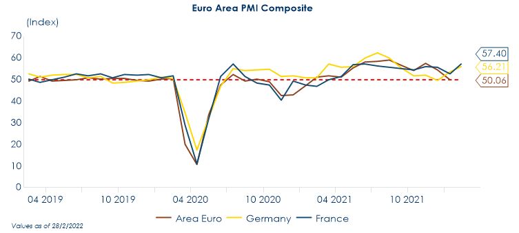 di Mediobanca S.p.A.IL PUNTO DELLA SETTIMANA: a febbraio riaccelera la crescita economica nell’Area Euro ma la guerra in Ucraina amplifica i rischi al ribasso e posticipa il picco dell’inflazione