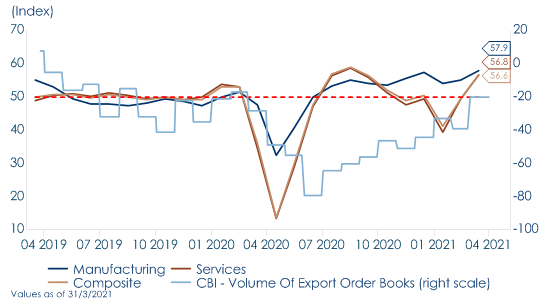 - L’economia britannica registra una ripresa più veloce delle attese, complice un’efficiente campagna vaccinale,