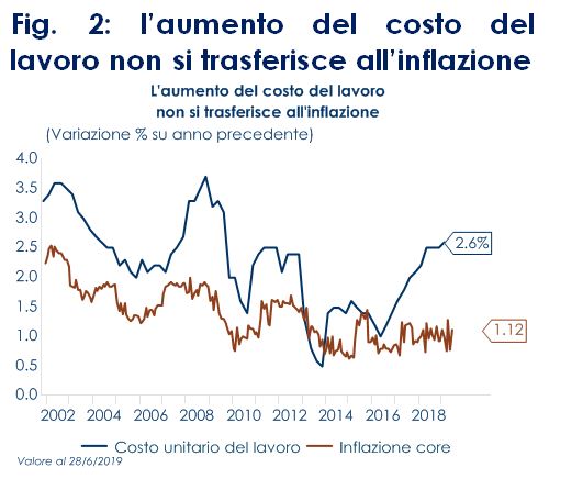 Fig. 2: l’aumento del costo del lavoro non si trasferisce all’inflazione