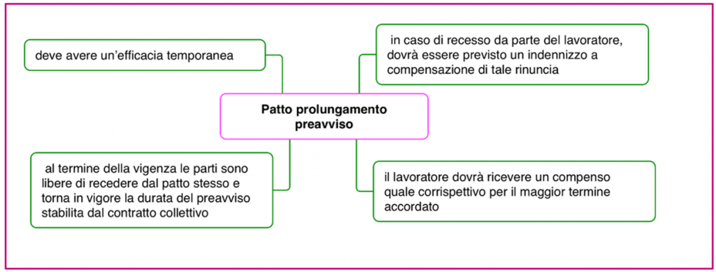 Il patto di prolungamento del periodo di preavviso, che è lo strumento mediante cui il periodo di preavviso può assumere la valenza di una politica di retention, si configura quando le parti, di comune accordo, concordano che l’eventuale futuro recesso venga assoggettato a un periodo di preavviso avente durata maggiore rispetto a quella prevista dalla contrattazione collettiva.